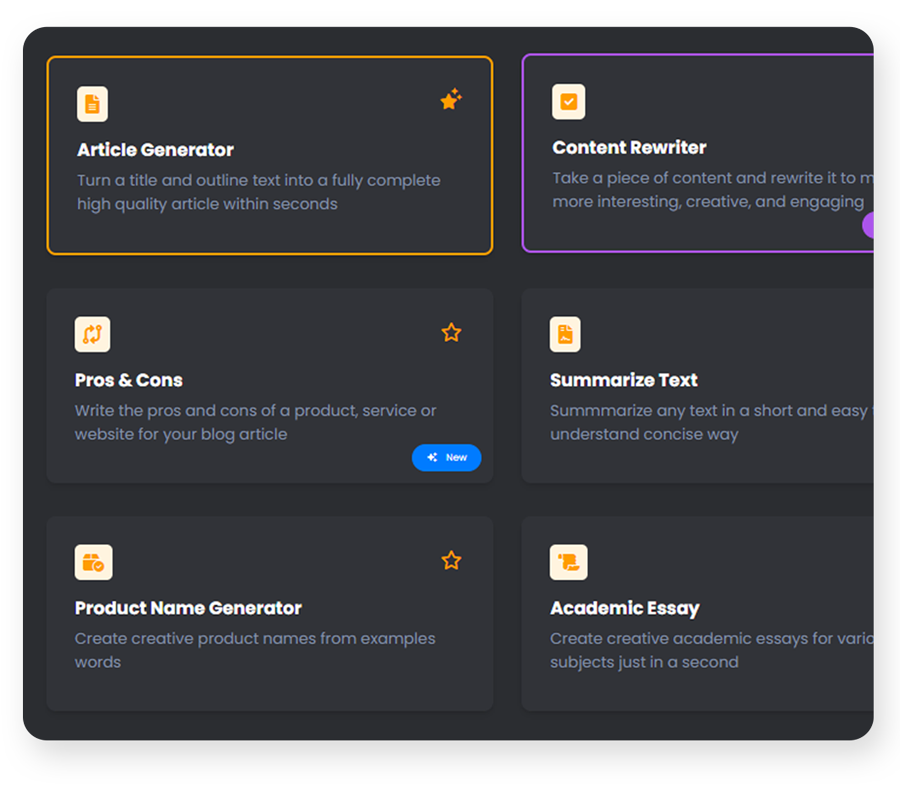 Article GeneratorContent ImproverBlog ContentsAd CreationsText to SpeechAnd Many More!